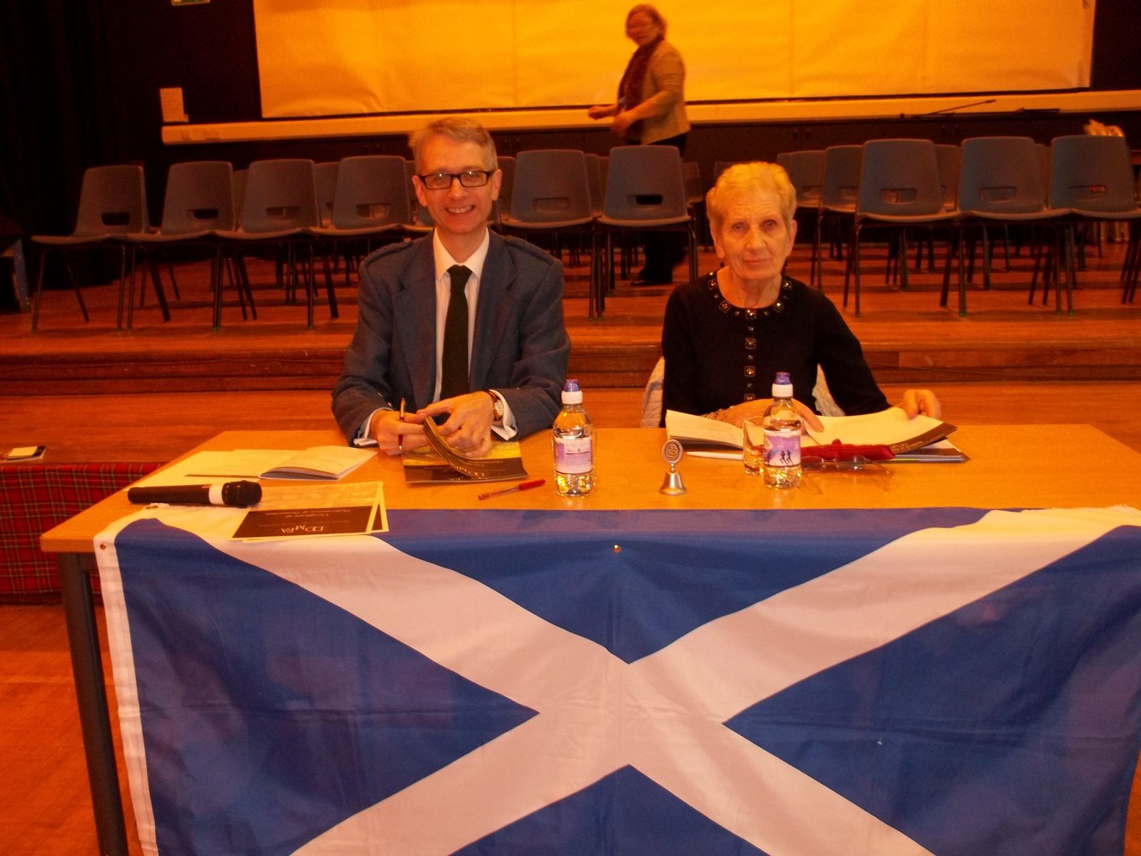 Adjudicator Andrew McConnell and scribe Betty Ferguson