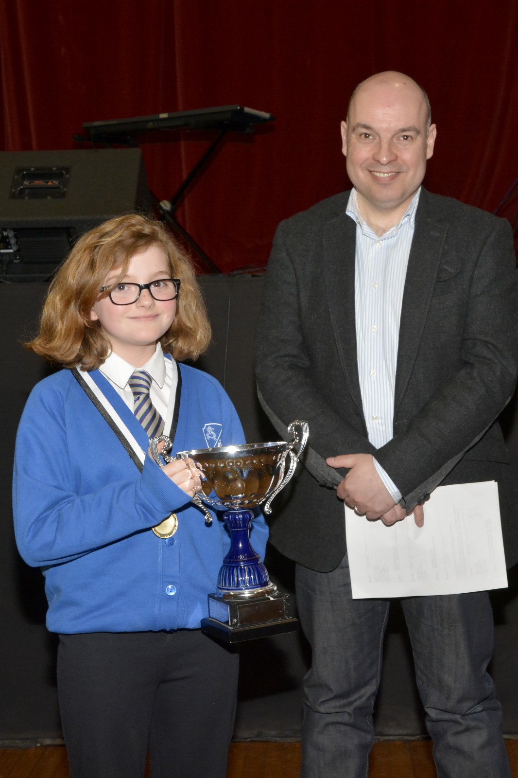 Star Murdy with adjudicator Wayne Robertson receiving the Marie Fielding Trophy for “most promising fiddler”